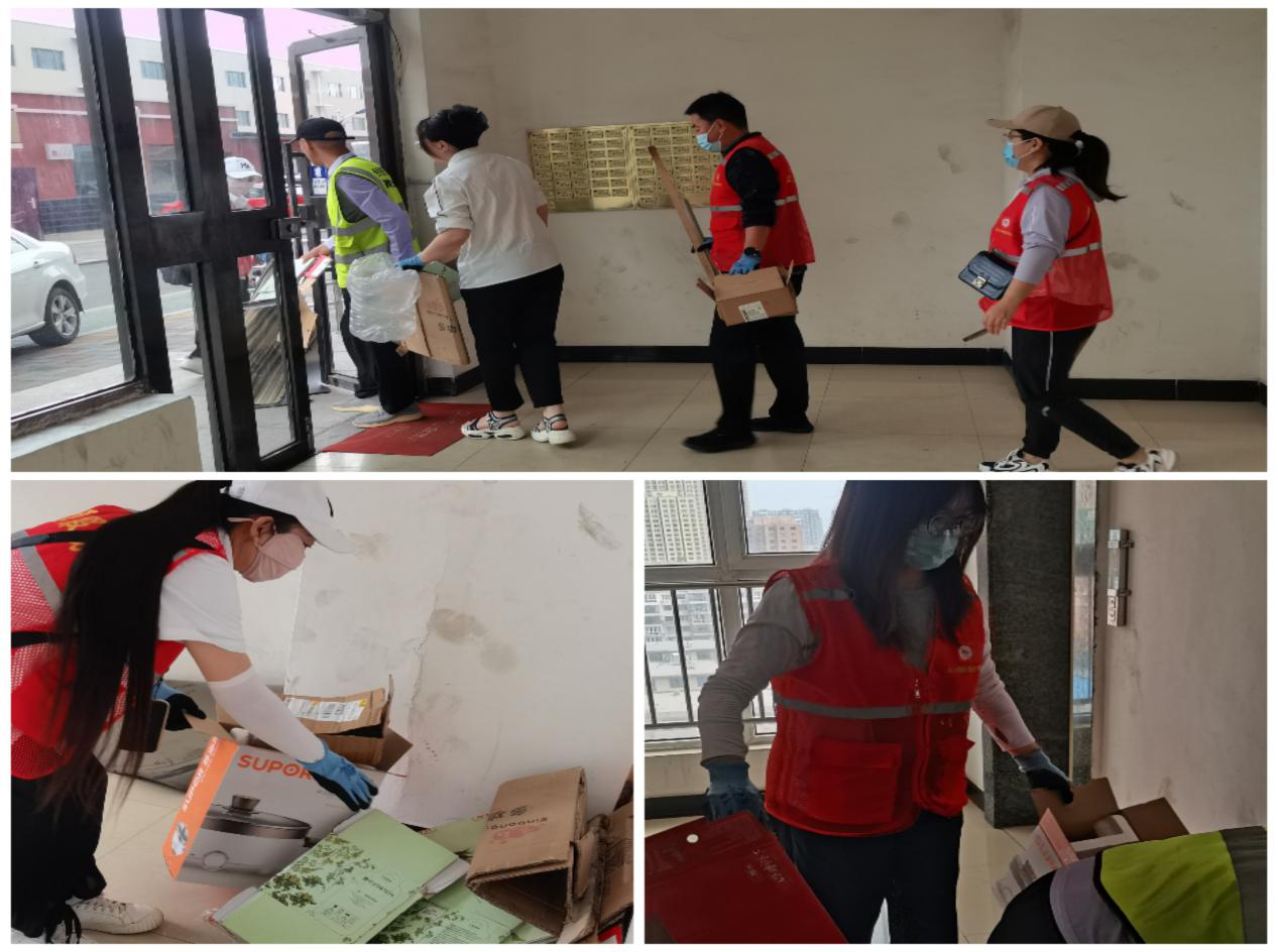 本次服务内容是重点清理9号和10号楼1-18楼管道井的生活杂物,排除可能存在的消防安全隐患。大家穿着红马甲,戴上手套,分为五组认真清理垃圾、建筑废品等,并将垃圾进行分类处理,木梯、清扫工具等放入规范安置处。在大家的共同努力下,管道井得到了彻底清理,解决了困扰社区许久的难题。