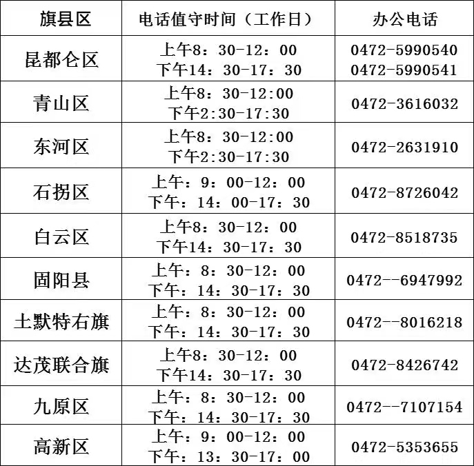 (二)可拨打12345市民热线或包头市民政局公布的市级、旗县区社会救助热线电话,咨询低保、特困人员救助、临时救助、养老服务等事宜。